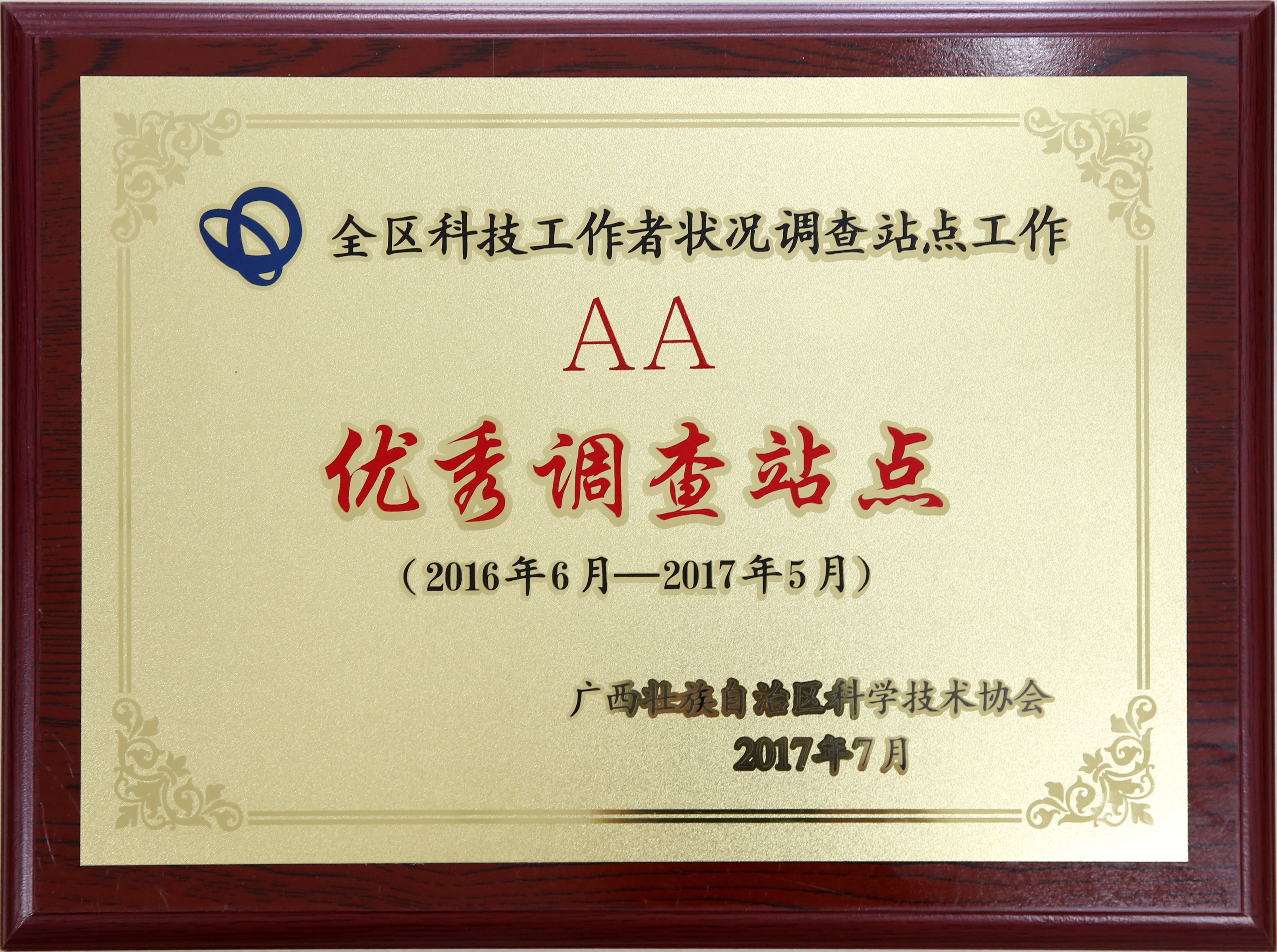 2016年-2017年評為全區(qū)科技工作者狀況優(yōu)秀調(diào)查站點