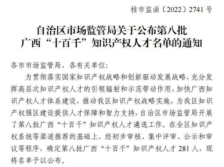 喜訊!梧州制藥三名同志榮獲第八批 廣西“十百千”知識產(chǎn)權(quán)人才榮譽