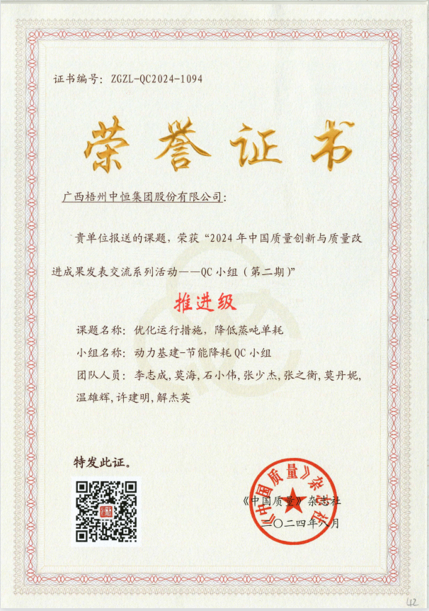 近日,梧州制藥動(dòng)力基建車間的《優(yōu)化運(yùn)行措施,降低蒸噸單耗》項(xiàng)目成果在2024年全國(guó)QC小組成果發(fā)表交流活動(dòng)中,獲“推進(jìn)級(jí)”成果稱號(hào)。