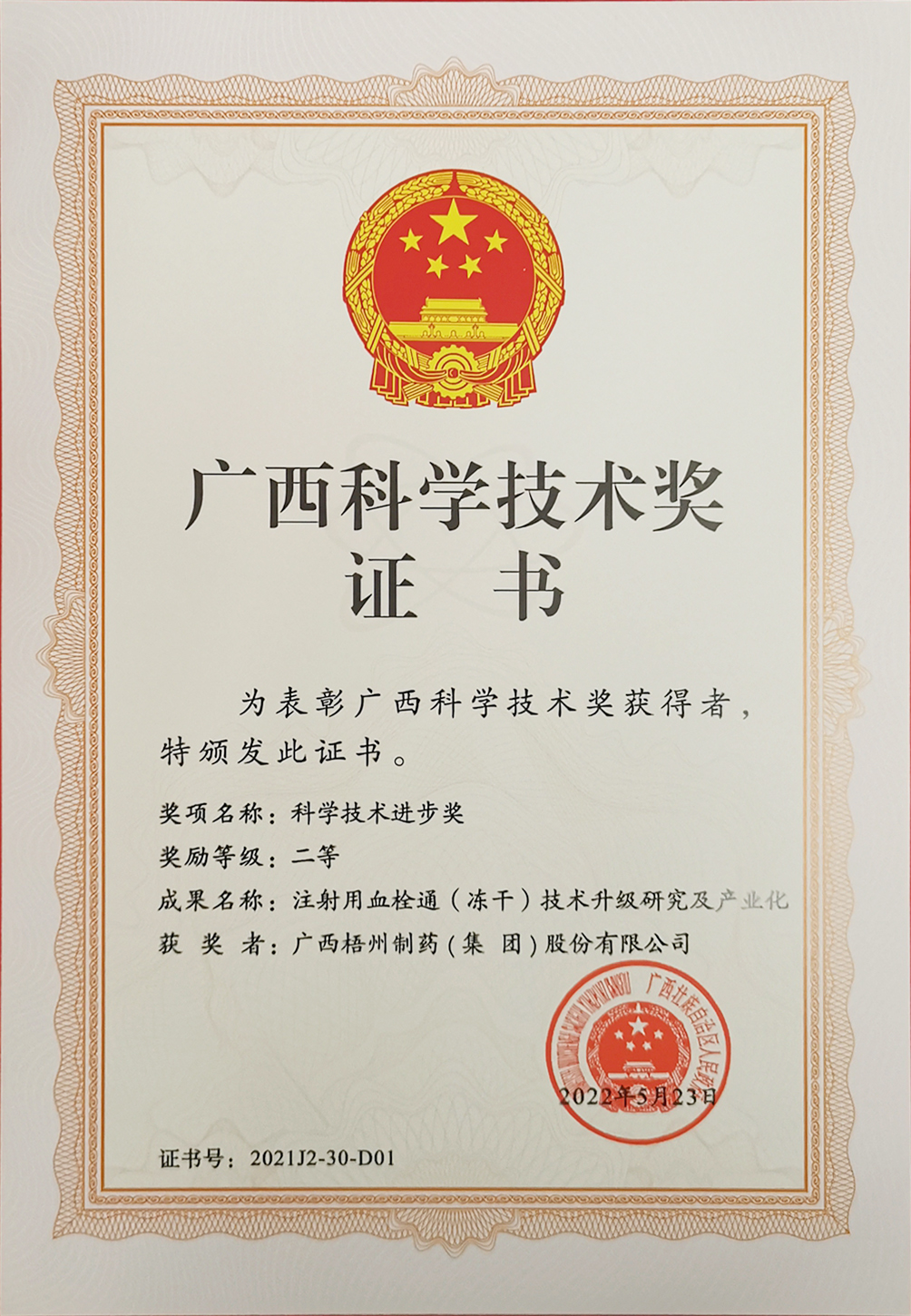 榮獲2022年廣西科學技術(shù)進步獎