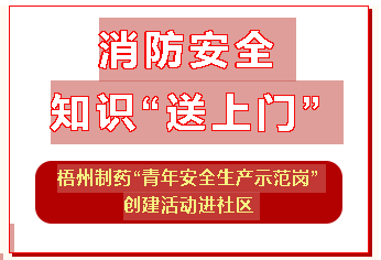 消防安全知識“送上門”梧州制藥“青年安全生產(chǎn)示范崗”創(chuàng)建活動(dòng)進(jìn)社區(qū)近日,梧州制藥青年員工積極參與“中恒集團(tuán)青年安全生產(chǎn)示范崗”創(chuàng)建工作,不但注重將創(chuàng)建活動(dòng)與日常班組生產(chǎn)工作有機(jī)融合,還結(jié)合今年第23個(gè)全國安全