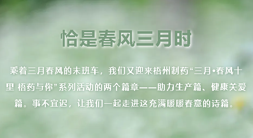 恰是春風(fēng)三月時乘著三月春風(fēng)的末班車,我們又迎來梧州制藥“三月?春風(fēng)十里 梧藥與你”系列活動的兩個篇章——助力生產(chǎn)篇、健康關(guān)愛篇。事不宜遲,讓我們一起走進這充滿暖暖春意的詩篇?!局ιa(chǎn)篇】凝聚“志愿紅”協(xié)力助